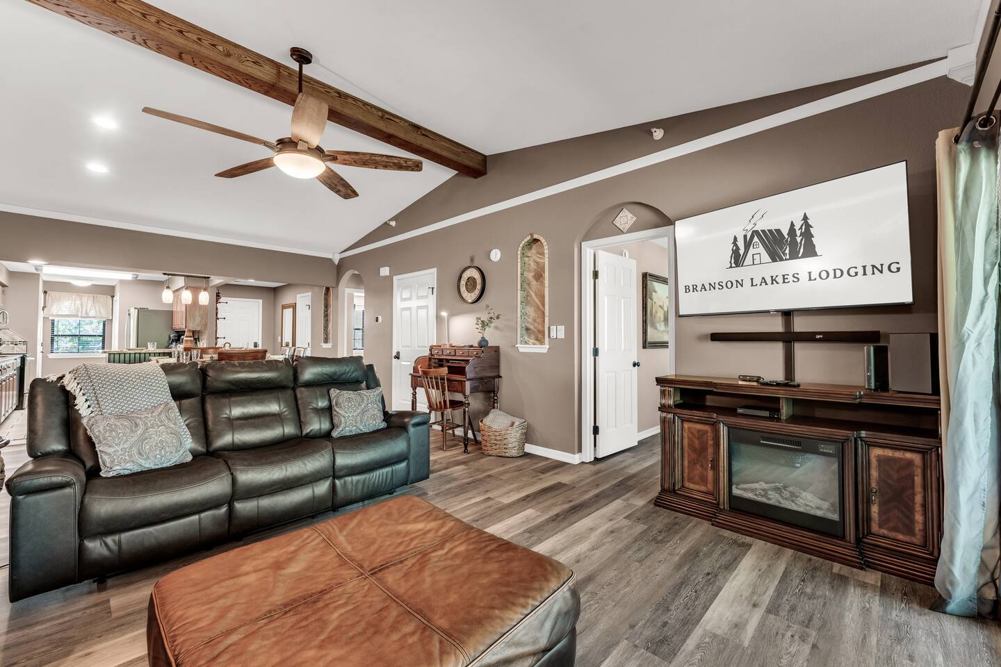 Guests love the updated bathrooms, including a new walk-in shower in the primary bath and a tub/shower combo in the second bathroom. Smart TVs make it easy to relax and stream your favorites after a busy day exploring Branson.