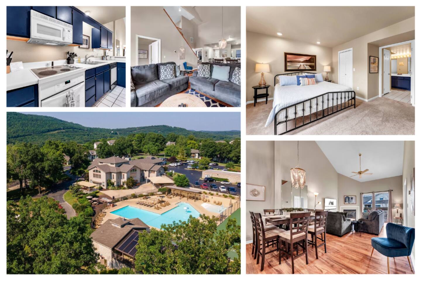 Tucked into serene Pointe Royale Golf Village, this three bedroom, three bath condo comfortably sleeps 9. Pointe Royale offers both an indoor and outdoor pool, hot tub, fitness center, tennis, pickle ball and a championship golf course. The location is convenient to Silver Dollar City , Hwy 76, Table Rock Lake, Lake Taneycomo, hiking and much more!