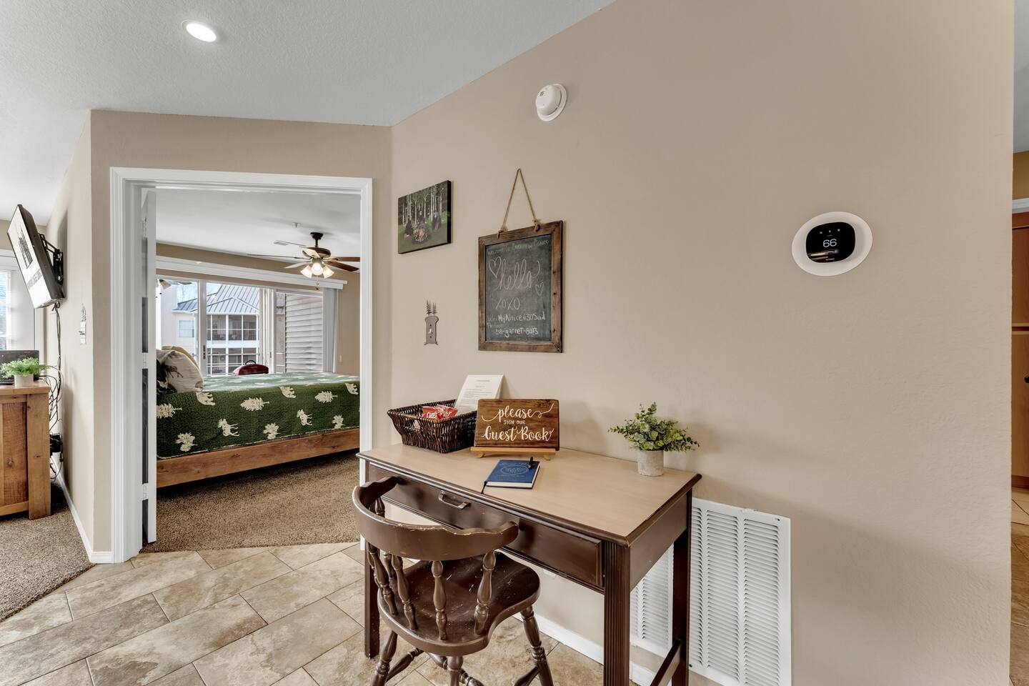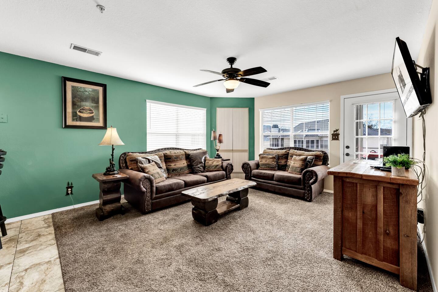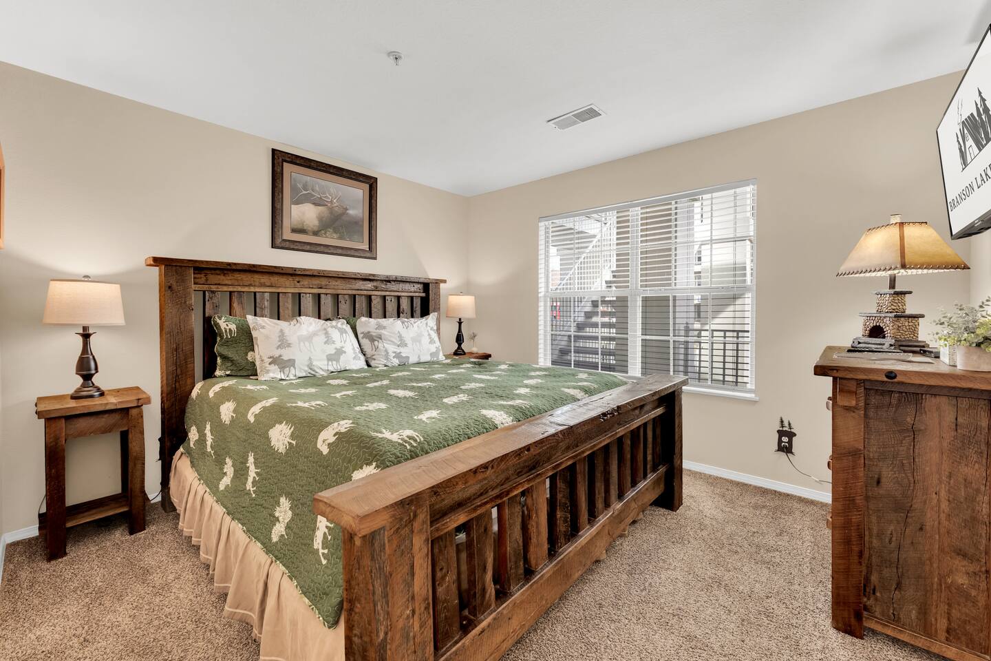 Situated on the second floor with easy access from the parking lot (gentle ramp + only three steps), this cozy Ozarks retreat blends rustic cabin décor with modern comfort.